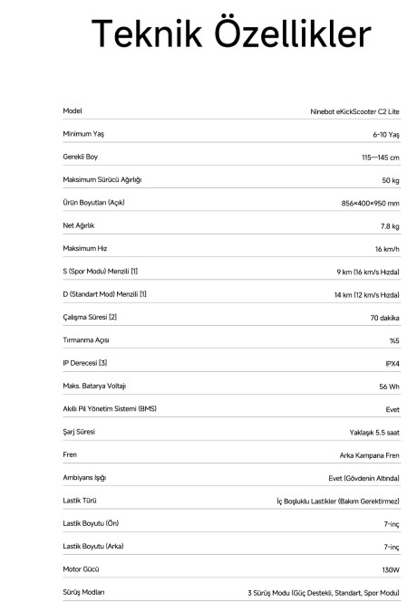Segway Ninebot C2 Lite Elektrikli Çocuk Scooter